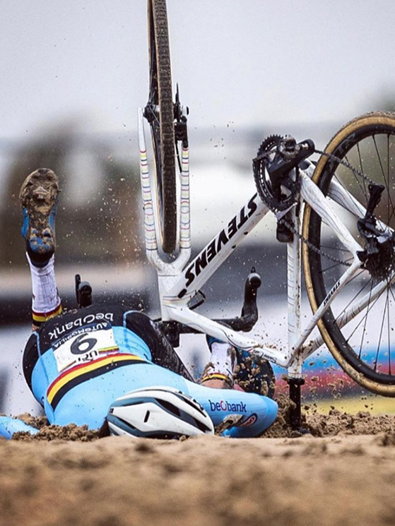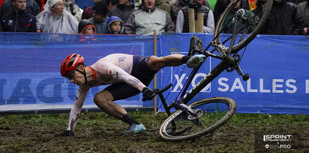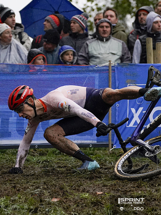 Vilmar Aastrup sperava senza dubbio di farsi vedere nella Coppa del mondo di Namur, ma non così. Mentre scalava il muro sterrato, con Van der Poel alle spalle che stava per doppiarlo, lo svedese ha sentito la gamba destra diventare di legno e ha capito che si stava mettendo male. Il crampo l’ha addentato senza pietà, così Vilmar ha prima cercato di mantenere l’equilibrio, poi si è steso per terra. Mentre Van der Poel, con Nys a ruota, lo aggirava e volava verso la vittoria (in apertura, immagine Photopress.be).