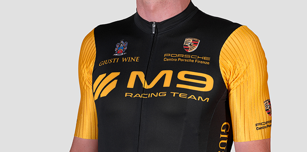 La gamma proposta da M9 è vasta e dispone di infinite possibilità di personalizzazione e prodotti di tutte le qualità e finiture. Un esempio è il 1050 Pro Jersey, un modello con manica a taglio vivo studiato per i team sportivi, che vanta caratteristiche di traspirabilità e leggerezza al top. E’ in questa versione la maglia del M9 Racing Team che ci ha visti nel 2021 in partenrship con Porsche come sponsor del team ufficiale M9. La qualità e la ricerca e sviluppo sono due mantra scolpiti nelle file dell’azienda.