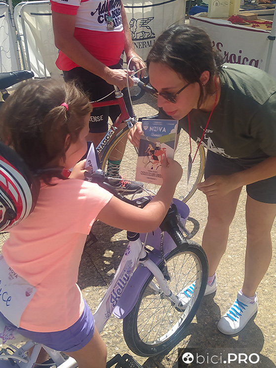 Allegra si presenta col papà Giuseppe al gazebo delle iscrizioni: «Ma se mi perdo?», chiede. «Tesoro non puoi perderti – le risponde la ragazza dello staff – siete in tanti, tutti dietro la macchina. E se proprio ti perdi chiama forte: Papààà». Allegra ha quasi dieci anni ed è una dei piccoli partecipanti alla Nova Eroica Family, la ciclopedalata per famiglie, su strade chiuse al traffico, che segue di un giorno l’evento principale di Buonconvento (Siena).