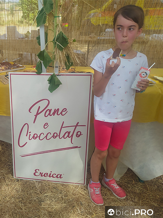 Ritorniamo a Buonconvento all’arrivo di questa Eroica “a pane e cioccolato”. Per tutti c’è una medaglia ed una piccola targa da mettere in cameretta e da fare vedere agli amici. Mark viene da Varese ed ha convinto sua moglie Paola ad inforcare la bici apposta per la Nova Eroica Family («E’ solo da marzo che pedalo», si schermisce lei) e per scortare loro figlio Jona che taglia il traguardo a braccia alzate. E’ tutto un sorriso. «Ho faticato un po’ sulla salita», dice. E papà Mark è felice: «Ha avuto un momento di difficoltà, ma ha tenuto duro. Come un vero eroico».