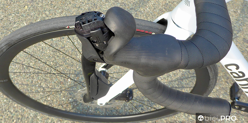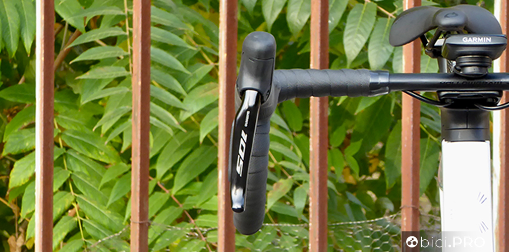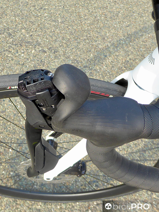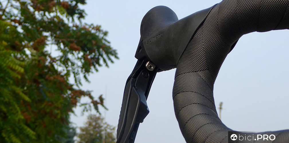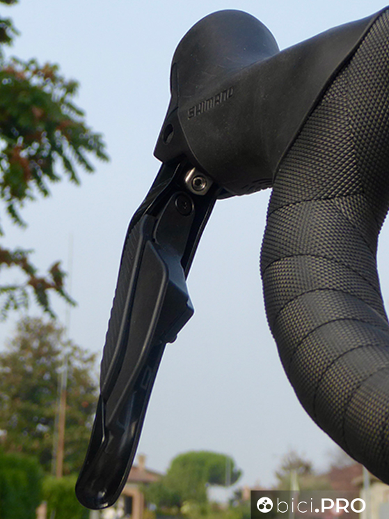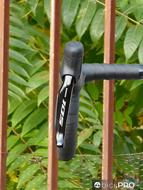 Gli shifter adottano la medesima ergonomia, così come i pulsanti laterali che sporgono leggermente per facilitare l’azionamento anche quando si indossano guanti invernali belli spessi. Le leve dei freni hanno la corsa aggiustabile. La forma dei manettini, rispetto a Dura Ace ed Ultegra cambia nella parte superiore; il 105 non prevede i pulsanti.