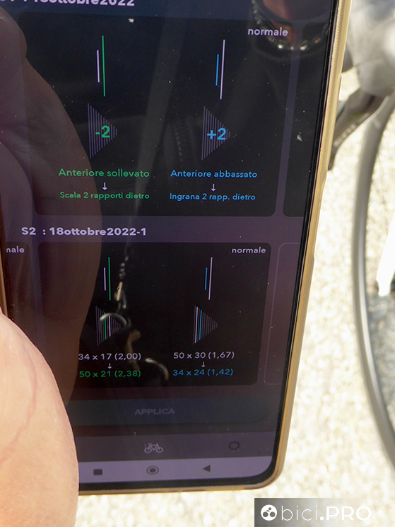 La app di gestione è la medesima per tutti i gruppi e sistemi Shimano. In fase di associazione, di riconoscimento e di setting, cambiano alcune funzioni, ad esempio perché la stessa app vede che non sono presenti i due pulsanti satellitari sopra i manettini.