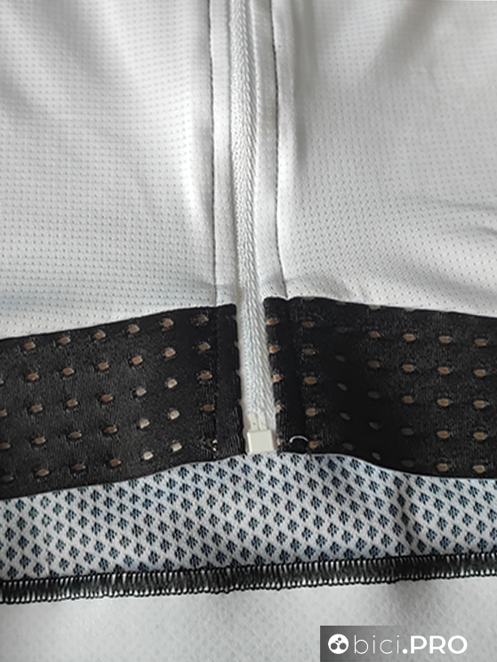 La banda elastica nel girovita è alta, resta asciutta nelle diverse condizioni e al suo interno c’è un puntinato che aumenta il grip. La cerniera è sostenuta con una ribattitura rigida ai lati, soluzione che abbiamo apprezzato e che minimizza le interferenze che talvolta si creano tra cursore e orlo.