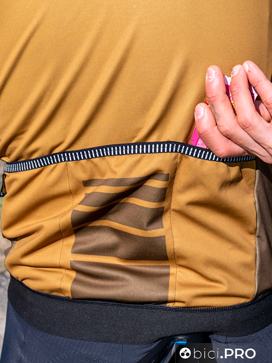Le tre tasche posteriori e la loro profondità, sono un valore aggiunto non da poco, un fattore che conferma la piena sfruttabilità di questa giacca anche per giri lunghi, dove la capienza delle tasche è fondamentale. Hanno un orlo superiore che rifrange la luce.