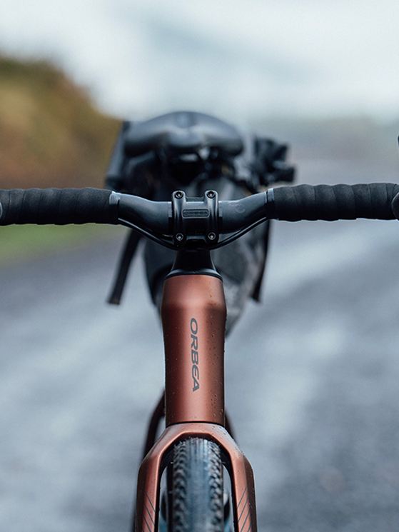 Allo stesso tempo Orbea si è concentrata sulla sicurezza in discesa, aprendo l’angolo della sterzo e aumentando l’interasse per ottenere una maggiore stabilità alle alte velocità. La forcella è in carbonio e permette il passaggio di pneumatici fino a 35mm di diametro (o 32mm con i parafanghi).