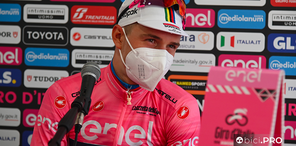 Nei giorni scorsi ha raccontato che il primo Giro di cui ha memoria è quello del 2008, vinto da Contador con la magia dell’Astana. Ora che lo stesso simbolo fascia lui, a tratti lo tocca col palmo della mano. E se non fosse per la mascherina con cui si protegge da ogni possibile insidia, siamo certi che sarebbe lì a sorridere.