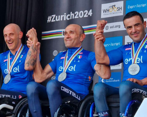Adesso lo posso dire. Andando a Zurigo, avevo scritto un numero di medaglie volutamente più basso, vale a dire otto come a Parigi, perché ho cercato di tenere i piedi per terra. Sapevo che sarebbero state di più. Avevo una nazionale che mi aveva dato tantissime conferme anche in Coppa del mondo. E se non ci fosse stata l’ingiustizia di Bosredon inserito in H3 (*), lui che di fatto è un H4, a Parigi avremmo raccolto un argento nella crono e forse su strada sarebbe arrivato l’oro. A Zurigo, la stessa cosa. Se non ci fosse stato lui, Martino Pini avrebbe vinto il mondiale. Sono abbastanza sicuro che dal prossimo anno il francese tornerà H4, ma nel frattempo con lui si sono garantiti tre medaglie d’oro alle Paralimpiadi.