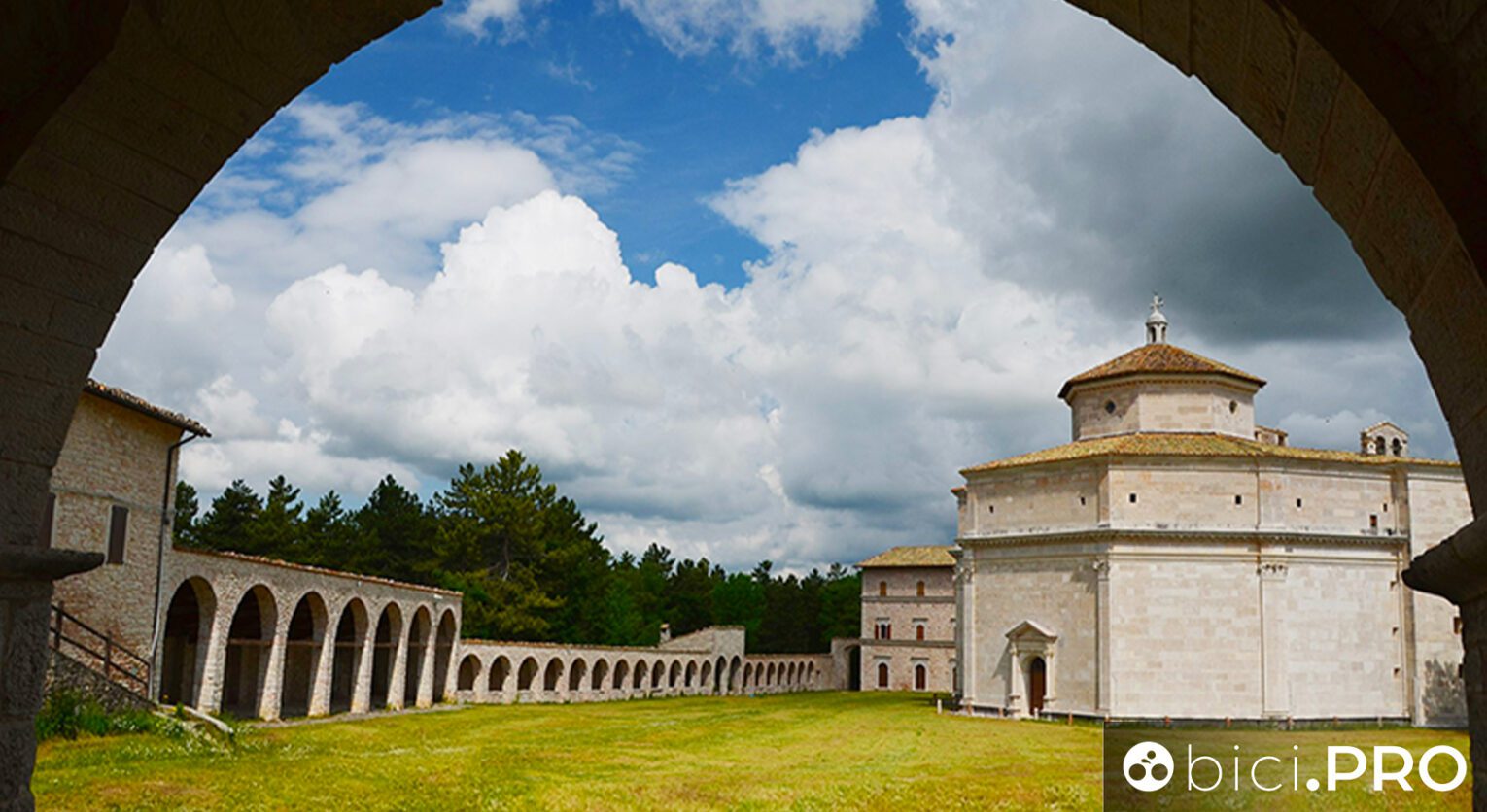 Cominciamo con il secondo anello. La partenza è dalle azzurre acque del Lago di Fiastra e, per i primi 15 chilometri, si sale costantemente in leggero falsopiano fino al Santuario di Macereto (foto di apertura). E’ un complesso religioso, che sorge sull’omonimo altopiano a circa 1.000 metri di quota e che è monumento nazionale fin dal 1902.