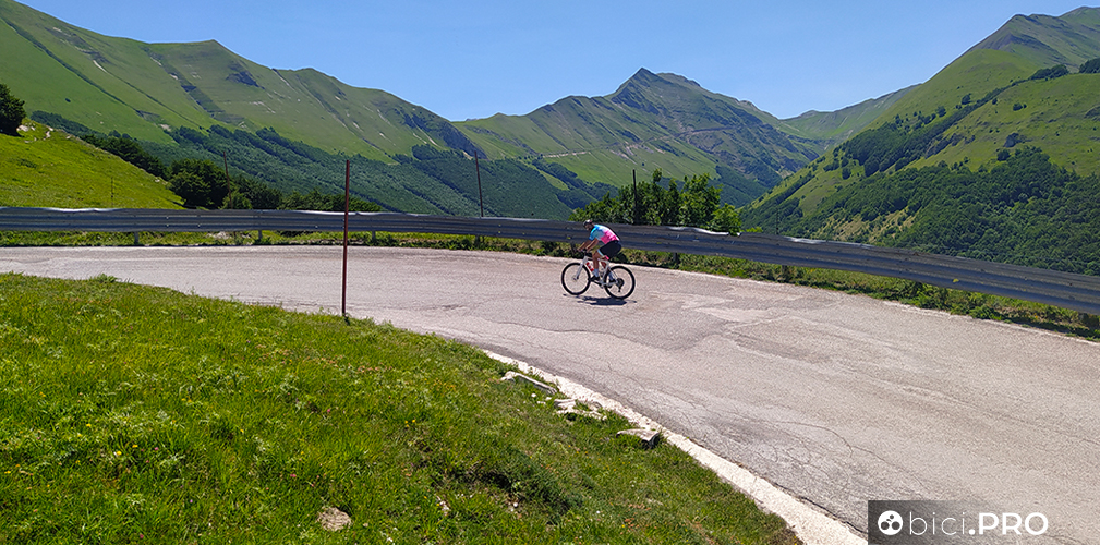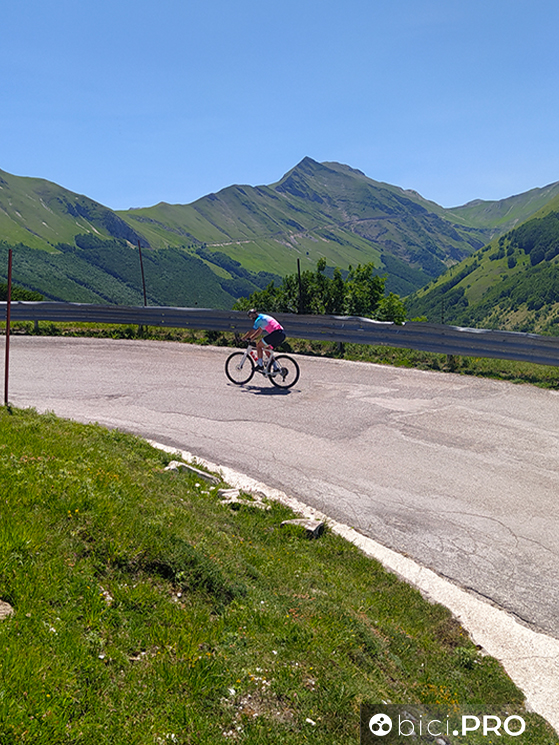 Si parte da Visso, ai piedi dei Sibillini, e si prosegue per i primi 6 chilometri nella gola della Valnerina, quindi si svolta a destra per arrampicarsi in una zona isolata, grazie ad un’ascesa impegnativa (6 chilometri all’8,2 per cento di pendenza media).
