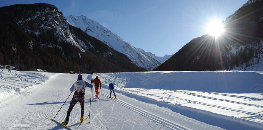 La Valle di Cogne non è solamente un posto magico per pedalare, ma anche per chi ama lo sport invernale. Qui bici e sci di fondo vanno a braccetto. Non è raro che le stesse piste battute dalle ruote grasse, appena cadono i primi fiocchi di neve, siano cavalcate dagli sciatori.
