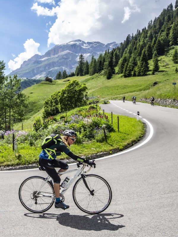 La mia salita preferita è proprio quella che porta al Pordoi, sono sincero. Mi piacciono entrambi i versanti, ma forse un filo di più quello che sale da Canazei. Mentre uno dei giri preferiti è quello con Colle Santa Lucia, Giau, la discesa verso Cortina e, prima di arrivarci, la svolta per il Falzarego e poi ancora più su sul Valparola. Quindi scendi a La Villa, Corvara, ti arrampichi sul Gardena, fai il Sella e rientri sul Pordoi dal lato di Canazei.