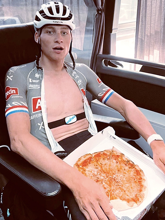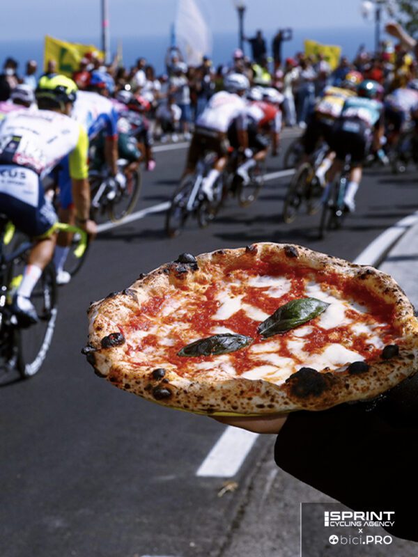 Non solo robot: i corridori sono umani, anche in questo ciclismo super tecnologico. E ci si rende conto che lo sono quando, specie al termine di avvenimenti importanti, una delle prime cose che cercano è quella della soddisfazione del palato. E questa soddisfazione passa spesso attraverso una calda e fumante pizza.