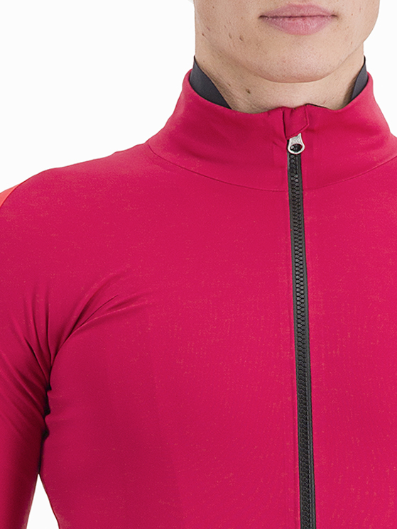 Castelli e Polartec sono voluti ripartire da zero per creare questo capo d’abbigliamento, rivalutando le regole per offrire ai ciclisti qualcosa di unico. Alla base c’è la ricerca della performance, che passa dalla tecnica ma anche dal comfort. Pedalare ad alti livelli porta il nostro fisico a vivere in condizioni stressanti. La traspirabilità del tessuto AirCore permette al ciclista di pedalare ad alta intensità senza avere la necessità di aprire la zip frontale per mantenere costante la temperatura corporea.