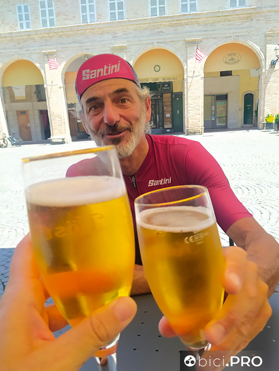 Per agguantare quella birra nel centro di Fermo che sogniamo da un po’, dobbiamo affrontarne ben due di salite, quella di Montegiberto (3 chilometri al 7 per cento) e quella che porta al al centro storico del capoluogo. Quassù quest’anno c’è stato l’arrivo di tappa della Tirreno-Adriatico, conquistato da Barguil nella frazione in cui Pogacar, Evenepoel e Vingegaard hanno sbagliato strada.