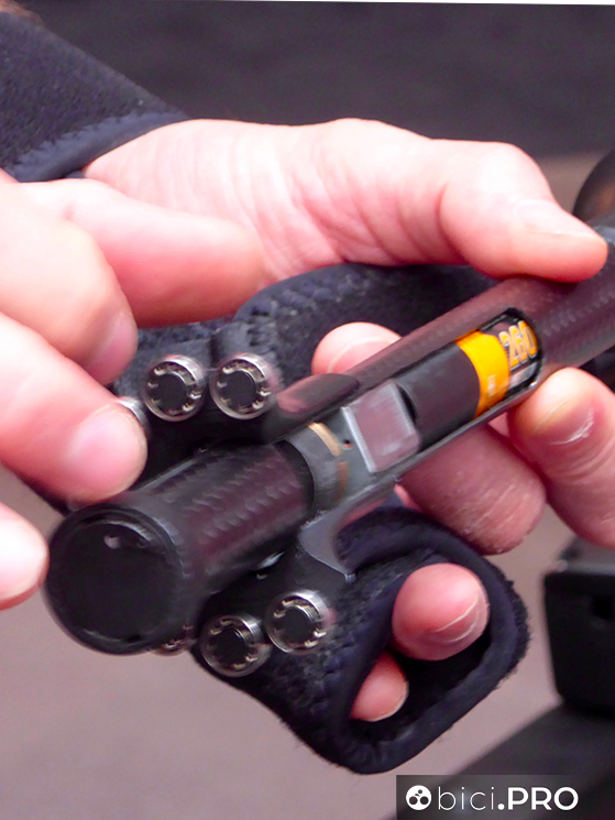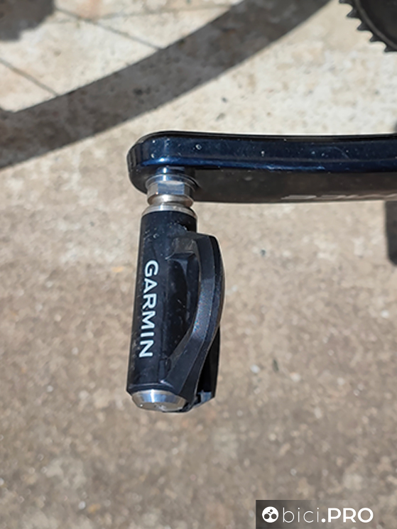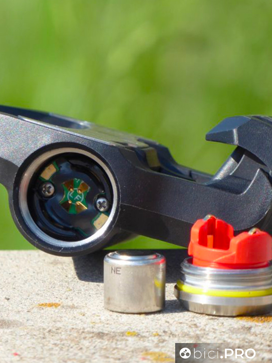 Se comparato con la versione standard, è invece differente il perno, in cui sono alloggiati la batteria e tutto il pacchetto di lettura e trasmissione del segnale. E’ in acciaio Inox di grado militare, con una filettatura tradizionale per l’inserimento nella pedivella e un quadro da 15 millimetri per la chiave inglese: non c’è la sede per la brugola. Al suo posto c’è una sorta di cappuccio in policarbonato da dove l’antenna trasmette il segnale. Buona parte dello spazio interno al perno è occupato dalla batteria, che ha una autonomia garantita di oltre 60 ore (l’utilizzo effettivo è di poco superiore, intorno alle 64/66 ore anche in condizioni di freddo e umido).