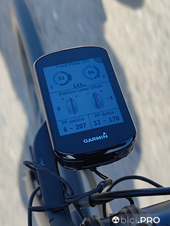 Attraverso alcune schermate dedicate del Garmin (ma anche tramite la app Favero Assioma), è possibile utilizzare anche la funzione PCO (platform center offset), una novità molto utile anche ai fini del corretto posizionamento della tacchetta. Se la PP (power phase) ci permette di analizzare le fasi di trazione e spinta della gamba, la PCO identifica la distribuzione della forza sulla battuta del pedale. Non stiamo argomentando dei marginal gains, ma dei vantaggi offerti dall’elettronica (quella buona) utilizzabile facilmente nel ciclismo moderno.
