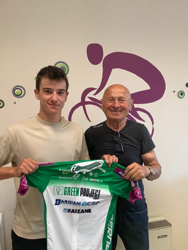 Nonostante questa stagione non sia ancora finita, anzi non se ne veda nemmeno l’orizzonte, c’è chi lavora in vista del 2024. Una delle squadre che ha già lanciato lo sguardo al breve futuro è la Green Project-Bardiani-CSF-Faizanè. I ragazzi di Bruno e Roberto Reverberi vedranno presto un nuovo compagno: Mattia Pinazzi(nella foto di apertura insieme a Bruno Reverberi). Parmense, classe 2001, che nelle ultime tre stagioni ha vestito la maglia dell’Arvedi.