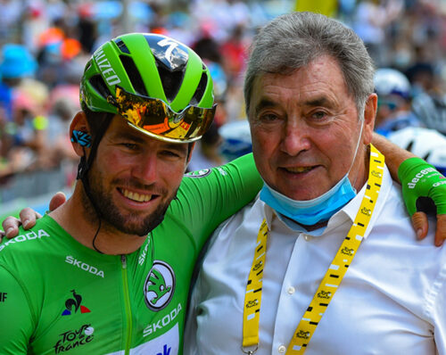 Un altra icona della corsa gialla è il Puy de Dome, il vulcano dormiente in Francia protagonista della nona tappa del TdF 2023. Una salita che ha visto lo storico duello fra Jacques Anquetil e Raymond Poulidor nella tappa Brive la Gaillarde – Puy de Dome del Tour del 1964. Diventata simbolo proprio per questa sfida “gomito a gomito” come documentarono i giornali dell’epoca. Ed è l’immagine della copertina de L’Equipe con una foto di questa sfida che fa da sfondo alla maglia dedicata alla nona tappa del Tour.