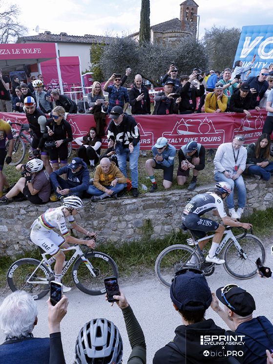 Sugli sterrati delle Strade Bianche Pidcock ha lottato contro Pogacar in un duello che ha emozionato i tifosiSugli sterrati delle Strade Bianche Pidcock ha lottato contro Pogacar in un duello che ha emozionato i tifosi