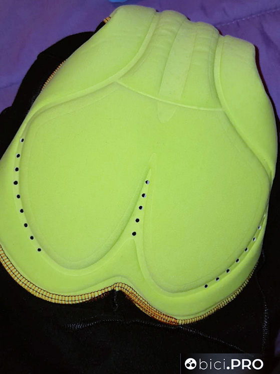 Il fondello è il cuore del pantalone: spesso e molto alto, con una struttura traspirante grazie a piccoli fori che favoriscono l’areazione. Alla vista non ci aveva entusiasmato, ma in sella ci ha completamente conquistati. Morbido, stabile, praticamente invisibile dopo pochi chilometri. Anche dopo tante ore di pedalata ci siamo sentiti freschi e senza fastidi nella zona del soprassella: una rarità.