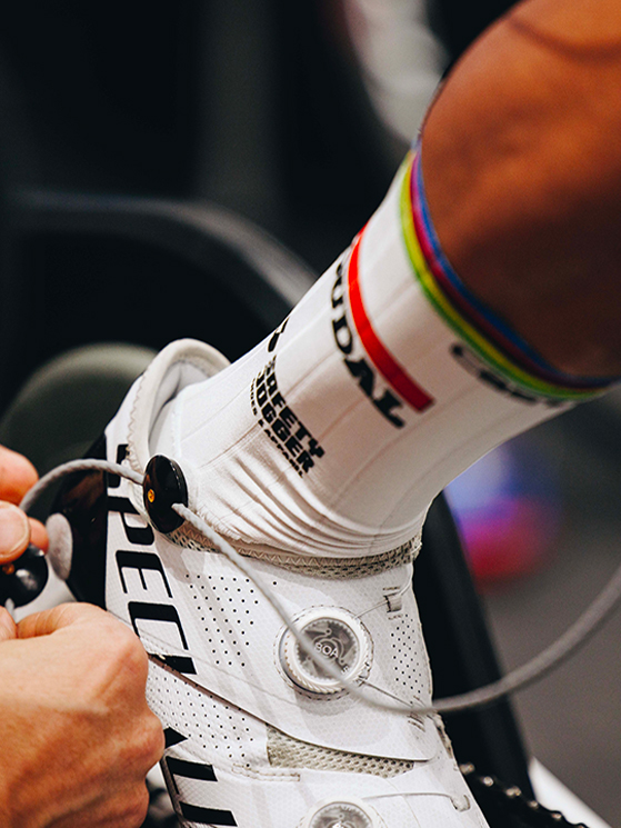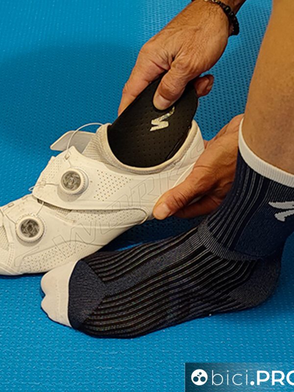Molto, anche se è difficile fornire una percentuale riferita ad un giro in bici o ad un allenamento. Possiamo ragionare sul numero di pedalate moltiplicate per il tempo di un’uscita. Ad esempio, ad una media di 80 rpm e 3 ore di in bici, siamo a 14.400 spinte sui pedali. I piedi rischiano di essere molto stressati, per via anche di suole super rigide che hanno oggi le scarpe.