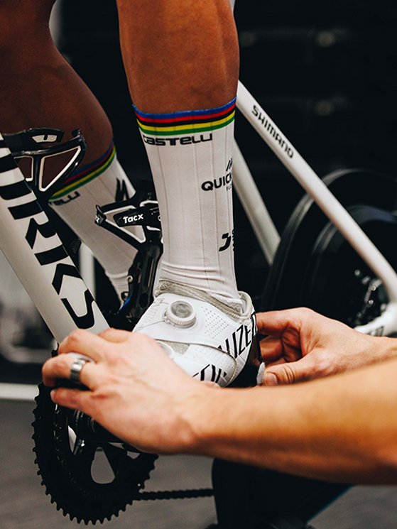 Un ginocchio può muoversi troppo lateralmente per colpa di una sella sbagliata, sella troppo alta, collasso piede e dell’avampiede, una differenza di lunghezza delle gambe, oppure delle tacchette posizionate male. Se non abbiamo fatto una buona valutazione fisica andiamo avanti a tentativi e rischiamo di amplificare il problema o di crearne uno nuovo. Il feedback del ciclista è molto importante ma, durante il fit, è abbastanza raro che sia preciso e sicuro, sempre meglio aspettare quello delle successive uscite su strada.