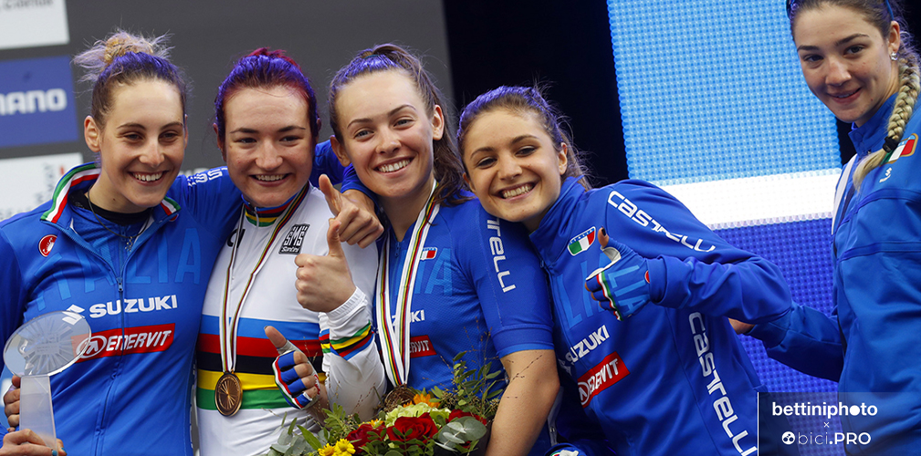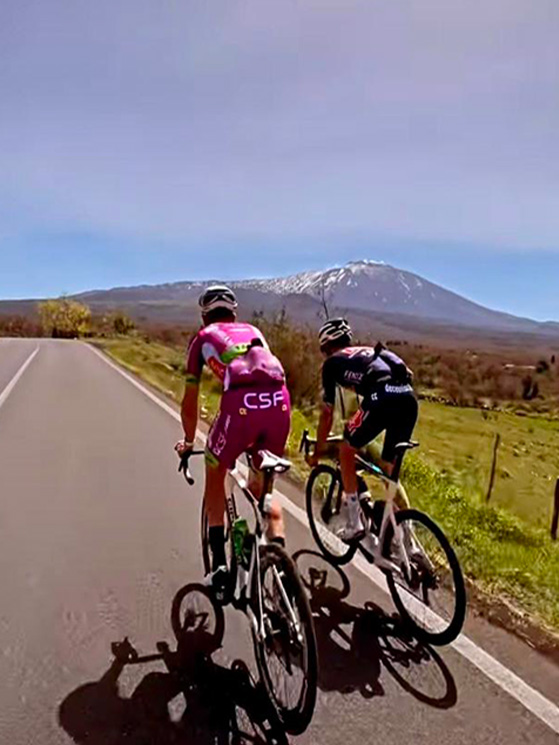 Lo scorso anno le azzurre (qui Silvia Zanardi ed Elisa Balsamo) prepararono al Sapienza la trasferta di Tokyo Anche De Marchi ha sperimentato l’altura dell’Etna, qui con Moschetto (foto Facebook/Rif. Sapenza)