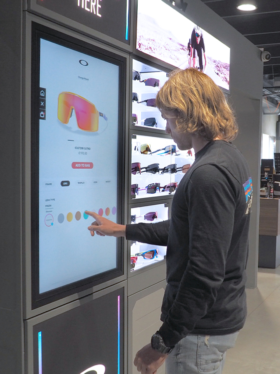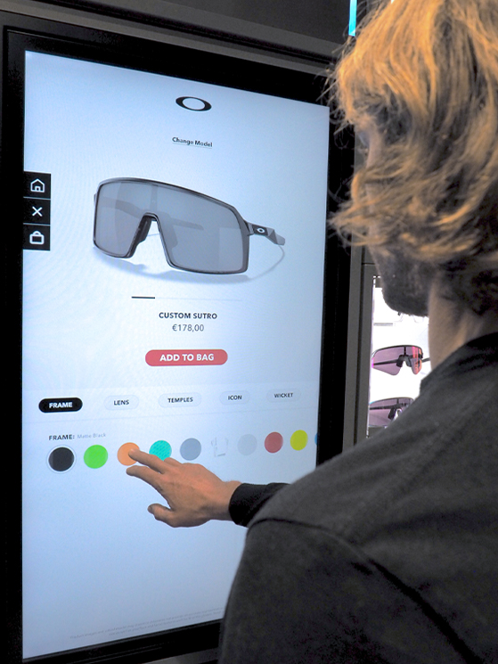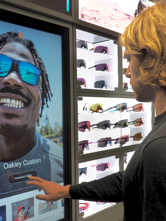 Nell’occasione è stato possibile “toccare” da vicino lo Smart Shopper Oakley presente in negozio. Si tratta di uno strumento intuitivo e coinvolgente che permette al cliente di personalizzare totalmente il proprio occhiale. Una volta scelto l’occhiale, con pochissimi e semplici passaggi, si possono scegliere il colore della montatura, la tipologia delle lenti e della custodia. E’ inoltre prevista la possibilità di incidere un messaggio sulle lenti per rendere ancora più unico e veramente personale il proprio occhiale. Una volta completata la procedura, sono necessari solo tre giorni di lavorazione per avere il proprio occhiale personalizzato pronto per essere indossato. Ricordiamo che in occasione del Test Day la personalizzazione dell’occhiale era gratuita.