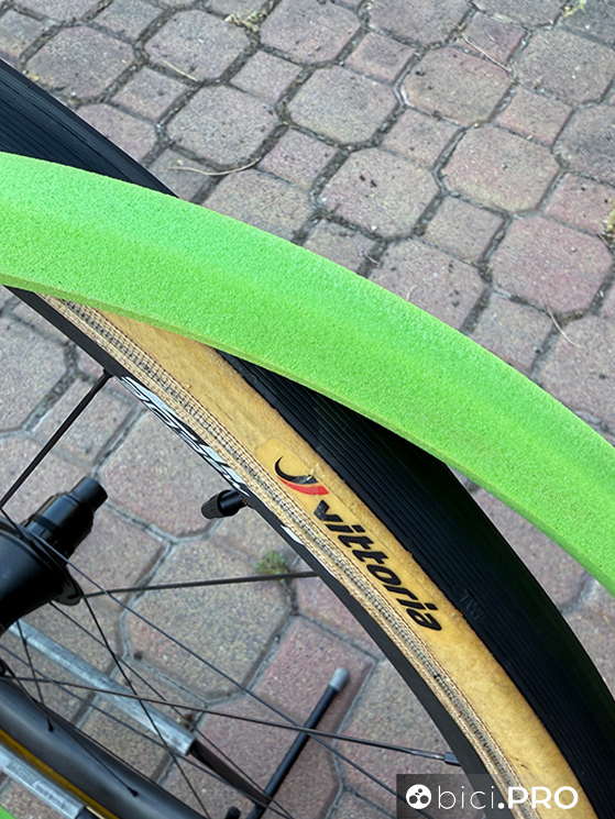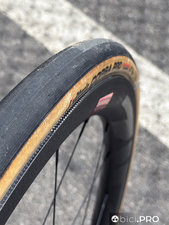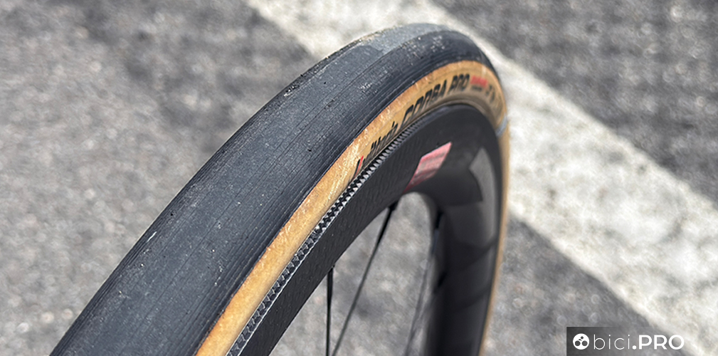 In fatto di performance mostra un’eccellente stabilità e scorrevolezza quando l’asfalto è asciutto, meno con il bagnato. E’ una gomma piuttosto dura, con risposte secche e dirette, con e senza camera. Misurata sul cerchio mantiene perfettamente la larghezza da 29, mentre la GP5000 sul posteriore spancia di 1 millimetro (si allarga a 31).