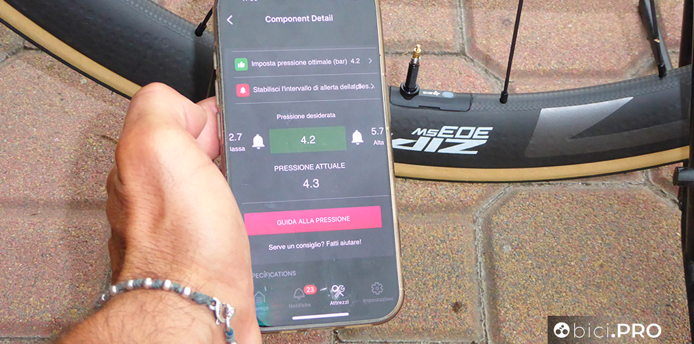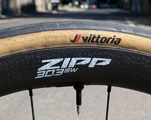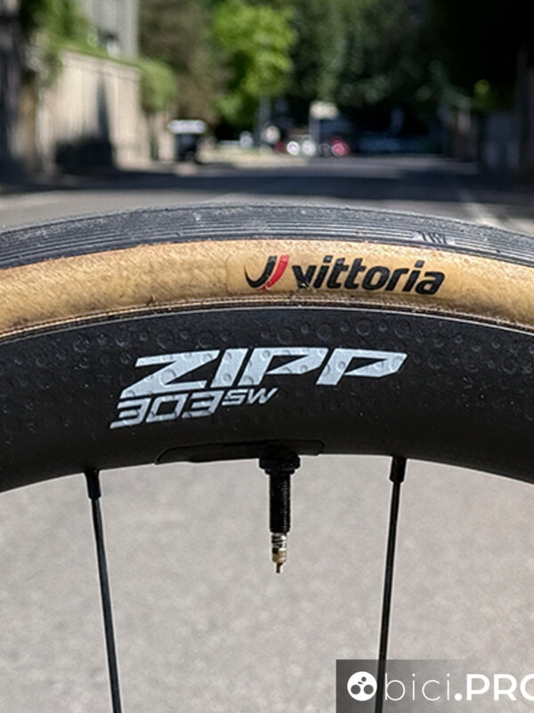 Il range di pressioni utilizzato. Per l’anteriore con camera d’aria siamo arrivati fino a 5,8 atmosfere (tanto, ma è pur vero che il binomio regge davvero bene), identificando a 5,5 il compromesso ottimale. 5/5,2 atmosfere in configurazione tubeless. Sulla posteriore ci siamo spinti fino a 6 con la camera (tantissimo, forse troppo, ma è pur vero che siamo andati alla ricerca di una sorta di limite).
