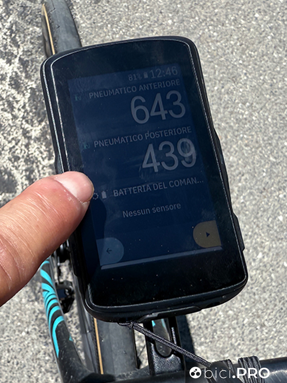 Il compromesso giusto per noi è 5,2/5,4 con il setting tubeless, per un peso di 66 chilogrammi, con la preferenza di risposte molto secche e dirette da parte di ruote/gomme. Si può scendere fino a 5 atmosfere in tutta tranquillità, sacrificando poco o nulla in termini di resa tecnica. In questi casi è sempre bene considerare le preferenze (soggettive) legate alla guida e alla percezione delle risposte che arrivano dagli pneumatici.