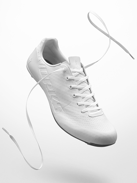 La tecnologia Body Geometry assicura l’allineamento ottimale di ginocchio, caviglia e piede. Il comfort della calzata abbinata alla chiusura a lacci, crea una tomaia flessibile e adattabile per ogni ciclista. La scarpa ha 12 punti separati per regolare la tensione e quindi creare una tenuta perfetta. Un altro punto a favore di questa chiusura è il peso ridotto. Togliendo i componenti di plastica una scarpa misura 44 pesa soli 236 grammi. Diventa così un partner ideale laddove i grammi possono fare la differenza, per esempio sulle salite. Le componenti in plastica sono state eliminate permettendo alla tomaia di seguire i contorni del piede per un fitting ottimale.