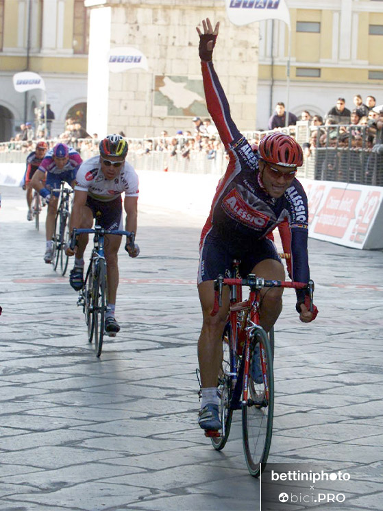 Perché Gaggio Montano è il paese della Saeco. E’ lì che ci sono parte degli stabilimenti, almeno una persona per famiglia ci lavora e quindi vedere i nostri due ragazzi vincere fu una grande festa, una gioia per tutti. La tappa la volle proprio il nostro patron Sergio Zappella. Simoni era maglia rosa uscente… Cunego aveva vinto il giorno prima a Pontremoli, dunque l’entusiasmo era alle stelle.
