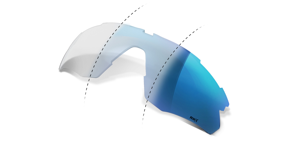 La vera chicca dal punto di vista tecnico è la lente fotocromatica e specchiata RWX by NXT. Questa è dotata di ottima ventilazione, per un uso ancora più sportivo dell’occhiale 023. La lente RWX fornisce il giusto livello di protezione, poiché si adatta immediatamente a qualsiasi intensità luminosa, che il sole sia splendente oppure al tramonto. Protegge gli occhi dal 100% dei raggi UV. Le molecole fotocromatiche sono direttamente incorporate e inserite sulla superficie più esterna della lente.