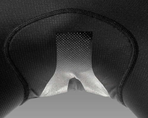 Lo stesso pad scende parecchio verso il muscolo adduttore, molto di più rispetto alla media, coprendo la zona che in molti categorizzano come una porzione dell’inguine. Anche in questo caso ci confrontiamo con un dettaglio che non è messo lì per caso, perché il fondello così disegnato protegge dalle frizioni che si possono creare con la sella e offre ulteriore supporto/sostegno ad una zona del corpo delicata e sollecitata.