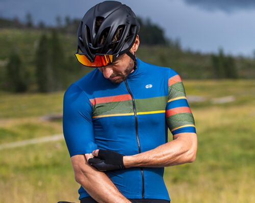 Per la realizzazione della maglia Mythos, GSG ha optato per il modello top di gamma Marathone. Il capo è realizzato in tessuto Active-X, un filato molto elastico che ben si adatta alla anatomia del ciclista. Le maniche sono previste in tessuto bielastico e realizzate a taglio vivo, comodo e tecnico. Sul fronte, la zip è nascosta ed è dotata di cursore auto bloccante. Sul retro sono invece presenti tre comode tasche, una con foro interno per ottimizzare il passaggio cavo degli auricolari. Il fine maglia è “siliconato” per un comfort ottimale.