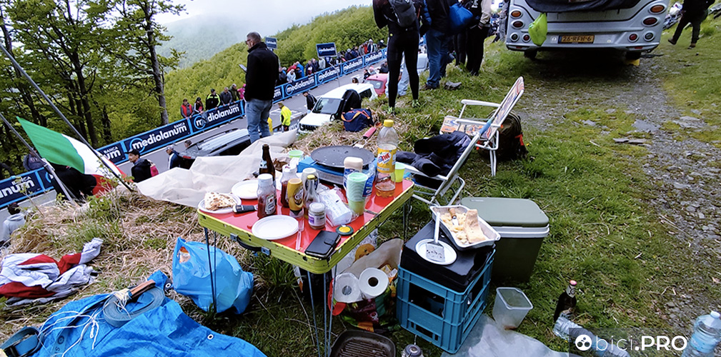 E poi c’erano loro: i tifosi. I veri padroni del San Pellegrino in Alpe. Sinceramente, col meteo che c’era ed essendo un pieno giorno feriale di maggio (il Tour de France è ben più fortunato in tal senso), non ci aspettavamo tanta gente.