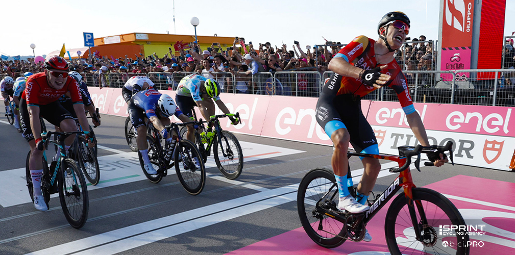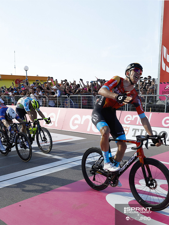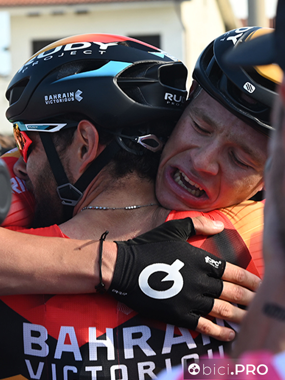 SAN SALVO – Pasqualon e la sua barba ridono e sprizzano felicità. Il suo compagno di stanza Jonathan Milan ha appena schiantato il gruppo dei velocisti e nella vittoria c’è stato il potente zampino del corridore veneto approdato quest’anno alla Bahrain Victorious.