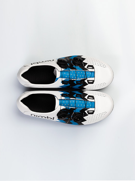 Tutte le scarpe Nimbl sono fatte a mano in Italiapresso lo stabilimento di proprietà di Porto Sant’Elpidio, nelle Marche, proprio nel cuore del distretto mondiale della calzatura di altissima qualità. L’intero ciclo di lavorazione è pertanto interamente artigianale, e questo permette di mantenere il controllo dell’intero processo produttivo. Le scarpe Nimbl – e lo saranno presto “grazie” ad Eros Capecchi anche queste esclusive Exceed celebrative del 19mo scudetto della storia interista – sono collaudate in gara. Nell’ultimo anno i corridori del WorldTour insieme a numerosi campioni del mondo su pista hanno difatti sottoposto queste calzature ad un banco di prova severissimo e davvero esigente.