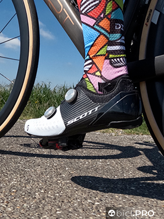 Scott Addict RC e Foil a disposizione (le due vittorie la ha ottenute con la nuova Addict), trasmissione Sram Red e ruote Zipp, tubeless Vittoria. Grazie al contributo del suo meccanico Edgar Coso Ferrer vediamo però cosa (e se) è cambiato rispetto al bikefitting usato fino all’anno passato.