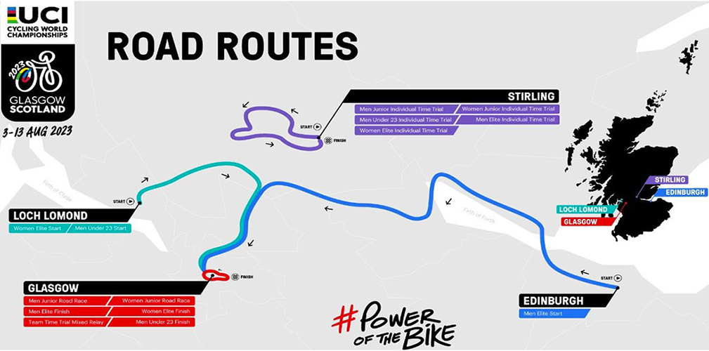 Si parte da Edimburgo e si fanno questi 128-129 chilometri in linea. Non c’è granché da segnalare, se non una salitella, dopo un centinaio di chilometri. Le strade sono prevalentemente belle, in alcuni tratti si trova qualche tratto leggermente più stretto alternato a stradoni più grandi. Il tratto è vallonato, l’unica insidia potrebbe essere il vento. Magari ad agosto non dovrebbe tirare in maniera esagerata, però sono zone aperte. Arrivati a Glasgow, si entra nel circuito.