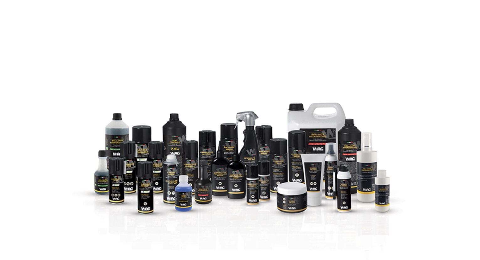 Wag presenta ben cinque gamme di prodotti di natura chimica. La prima è dedicata alla manutenzione con prodotti specifici per le parti più sensibili, come catena, freni e cambio. Un’altra gamma è dedicata ai lubrificanti ideati per la cura delle parti meccaniche. Il terzo gruppo di prodotti è dedicato alla pulizia della bicicletta, poi ci sono i prodotti per la riparazione come gli antiforatura, infine c’è la famiglia dedicata specificamente all’e-bike.