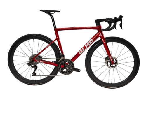 E’ equipaggiata con il gruppo Shimano 105 Di2 a dodici velocità con all’anteriore doppia corona 50×34, mentre la cassetta posteriore va dall’11 al 34. Comandi e impianti frenante sono sempre Shimano 105. Le ruote sono le PFR con profilo da 50 millimetri e montano copertoni Vittoria Zaffiro con larghezza 28 millimetri.