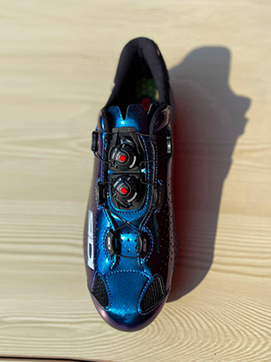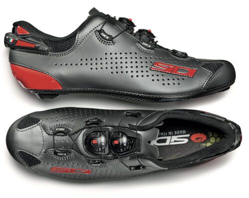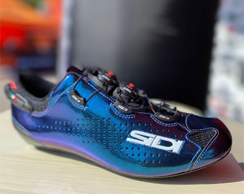 A proposito di suola in casa Sidi c’è stata proprio di recente una novità. Fino al 2020 i tre modelli di punta avevano la stessa suola in carbonio. Dal 2021 ne è stata introdotta una nuova in carbonio: C-boost SRS, dedicata al modello Shot 2. I tecnici Sidi hanno mantenuto costanti i punti cruciali come la posizione dei fori per il montaggio della tacchetta e i relativi spessori corrispondenti. Questa scelta è stata fatta per garantire l’assenza di variabili biomeccaniche tra una suola e l’altra. A livello di tomaia invece le scarpe si differenziano in base al modello.