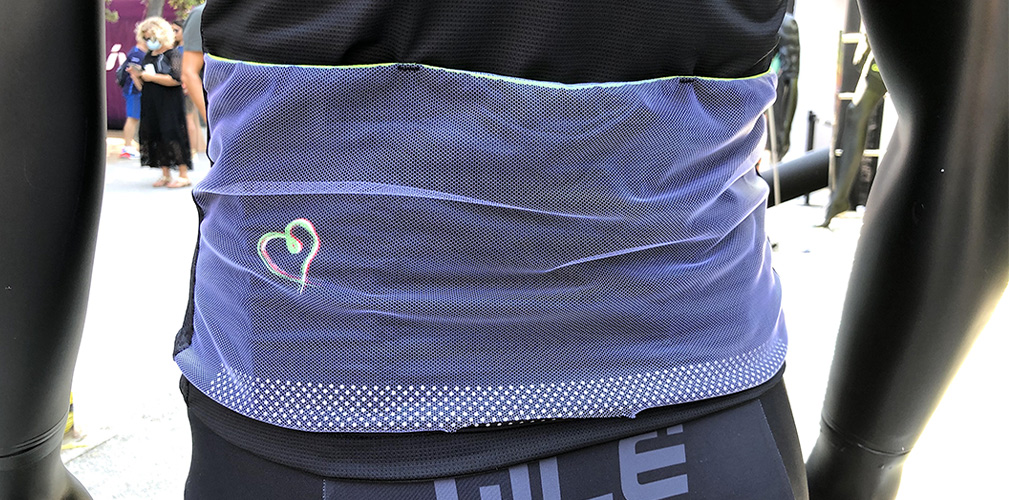 Il taglio? Ovviamente è slim. Curatissimi altri dettagli come la zip “a soffietto” che compre la cerniera stessa e fa sì che la grafica (anche pensando agli sponsor) non venga interrotta. Il colletto è basso come impone l’ultima tendenza della moda. E poi una cosa simpatica: nella parte posteriore anche per gli amatori così come per i professionisti, c’è la tasca porta numero che poi è una retina trasparente.