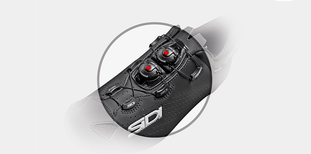 Sistema di chiusura unico, grazie ai suoi due rotori, marchiati Sidi, la possibilità di trovare la regolazione perfetta non sarà più un ostacolo insormontabile. I punti di pressione sono ridotti al minimo, un sistema di chiusura di questo genere si adatta alle necessità di tutti i ciclisti.