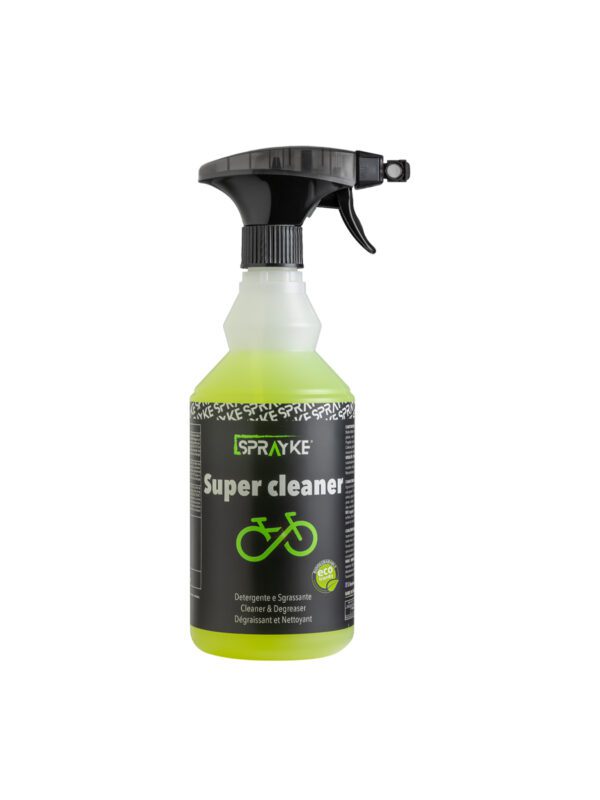 Sgrassare le parti meccaniche è uno dei passaggi principali per il loro corretto funzionamento. Sprayke propone quindi il Super Cleaner, un detergente sgrassante adatto alla pulizia di tutta la bici. Un prodotto che si applica rapidamente e facilmente, capace di detergere a fondo. Il Super Cleaner è biodegradabile e rispettoso dell’ambiente, un ottimo compromesso insomma. E’ progettato senza solventi petroliferi, compatibile con superfici dure ma delicate quali: carbonio, plastiche, gomme ed altro.