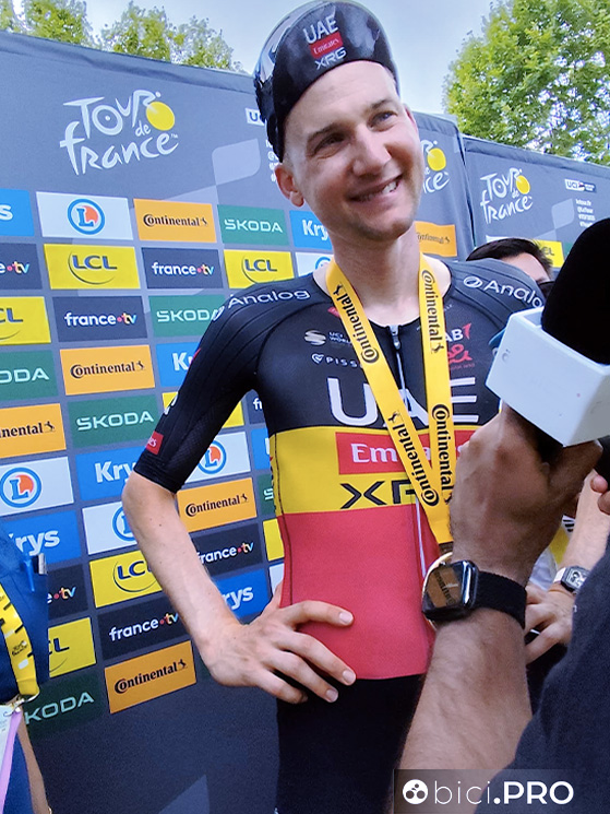 «Cosa mi passava per la testa? Pensavo solo a spingere e a non perdere il ritmo. In squadra c’è un bel feeling, so che i ragazzi e Tadej sono stati molto contenti per me. Scambierei subito la mia vittoria di tappa con la maglia gialla di Tadej a Parigi. Oggi si è creata questa opportunità e va bene, ma siamo tutti qui per Pogacar. Ci sono ancora due giorni molto difficili. L’altro giorno Tadej è caduto e questo ha costruito una situazione molto tesa. Nonostante questo abbiamo continuato ad attaccare, ma abbiamo sofferto molto tutti. Anche oggi, non avevamo intenzione di soffrire, ma ci sono cose che non possiamo controllare. Per questo dico che ci aspettano giorni difficili e che dobbiamo sempre essere vigilanti».