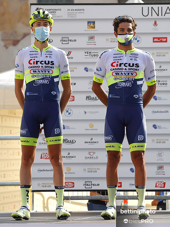 Il pullman dell’Intermarché-Wanty è nascosto dietro gli altri, in una vietta chiusa dove il pubblico fatica ad arrivare. A qualche metro da loro ci sono i mezzi del UAE Team Emirates e la folla attende che Tadej Pogacar e il suo ciuffo scendano quei pochi gradini. Così davanti al pullman della formazione belga ci sono pochi appassionati, ma tutti aspettano l’arrivo di Simone Petilli. Il lombardo nel frattempo è al foglio firma a salutare parenti e amici.