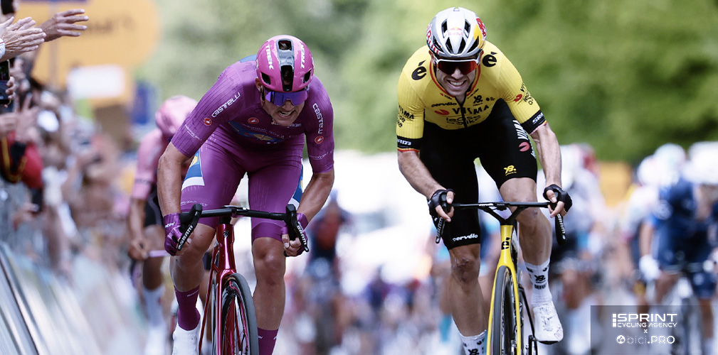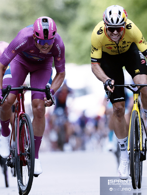 Lì andò in scena il duello tra Mads Pedersen e Wout Van Aert, a cui partecipò finché ne ha avuto la forza anche Isaac Del Toro. Emersero ovvie differenze fisiche tra i due “pesi massimi” e il più leggero messicano, uomo da classifica.